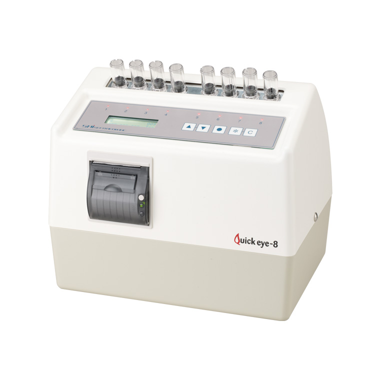 血沈(赤血球沈降速度)は古くからある簡便な検査で、炎症・免疫異常・貧血などが存在すれば異常値を示します。具体的には感染症、膠原病などでしばしば亢進し、特に関節リウマチにおいては病気の活動性を示す良い指標になります。クイック・アイでは高速処理により、血沈の1時間値を約20分で測定することができます。