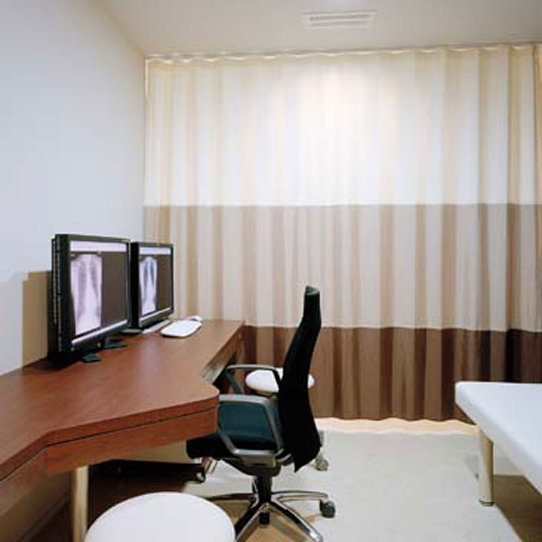 紙カルテやレントゲンフィルムを使用せずに、すべてを電子化し、待ち時間の短縮に努めております。診察内容のみでなく、血液・尿検査データ、レントゲン、心電図、超音波(エコー)、肺機能などの各種検査結果をコンピューターに取り込み、モニタ上で患者様に見ていただくことが可能です。